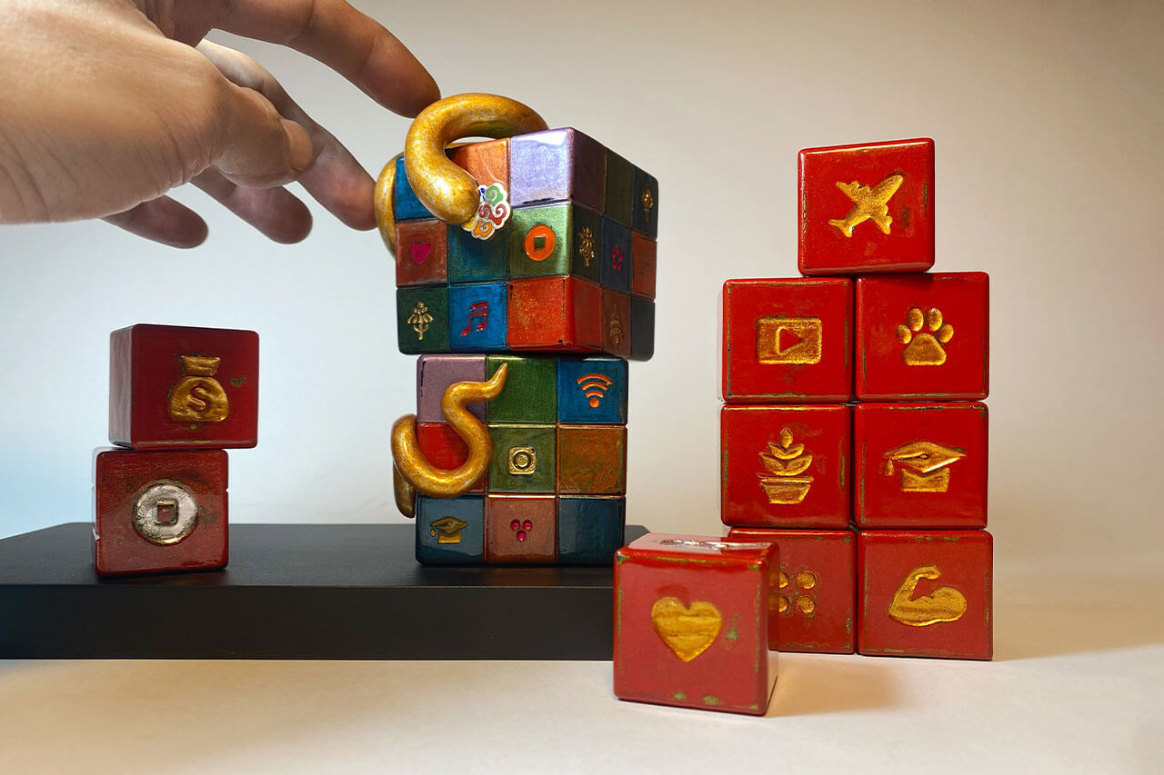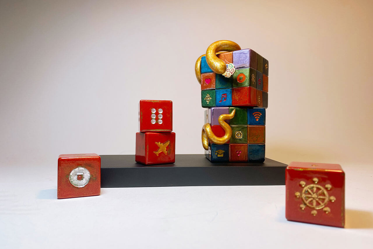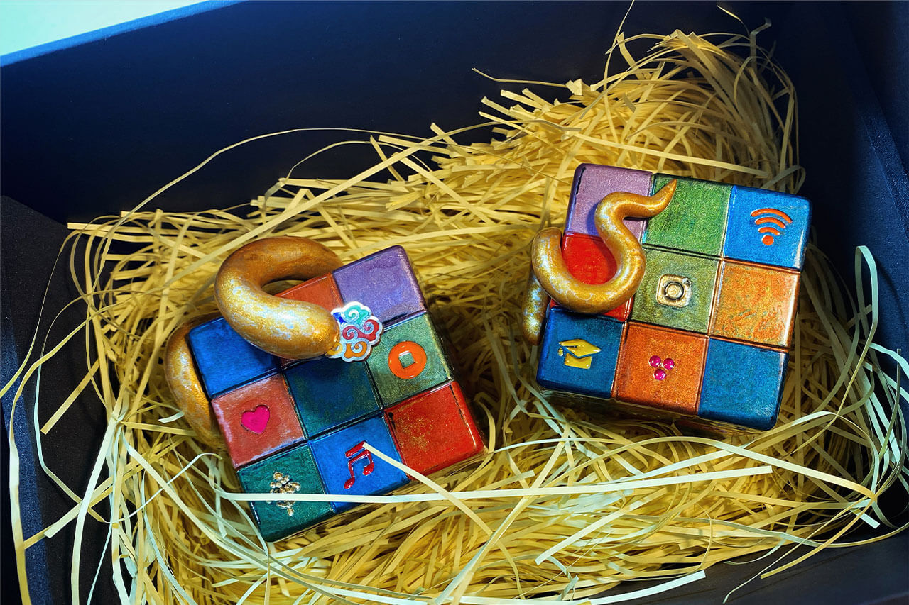 The combination of the snake—the zodiac animal representing the year 2025—and the classic Rubik’s Cube highlights the harmonious blend of ancient heritage and modern creativity.